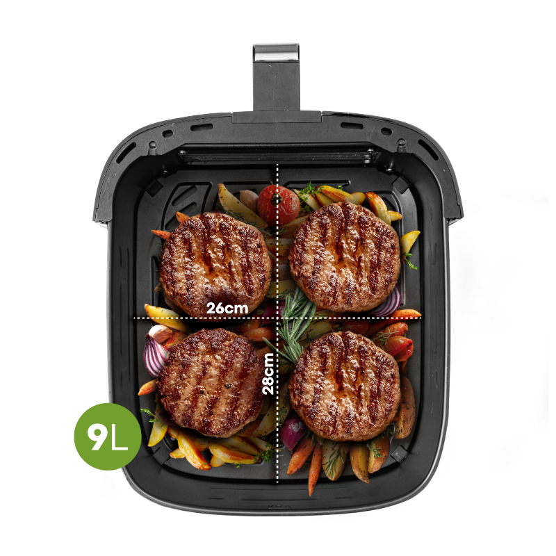 Με XXL χωρητικότητα 9Lt, σε αυτή τη φριτέζα αέρος μπορείς να μαγειρέψεις, να τηγανίσεις και να ψήσεις τα πάντα υγιεινά με ελάχιστο λάδι, χωρίς περιττά λίπη και στο μισό χρόνο. Έτσι μπορείς να απολαμβάνεις τις αγαπημένες σου συνταγές χωρίς ενοχές!