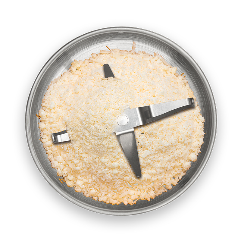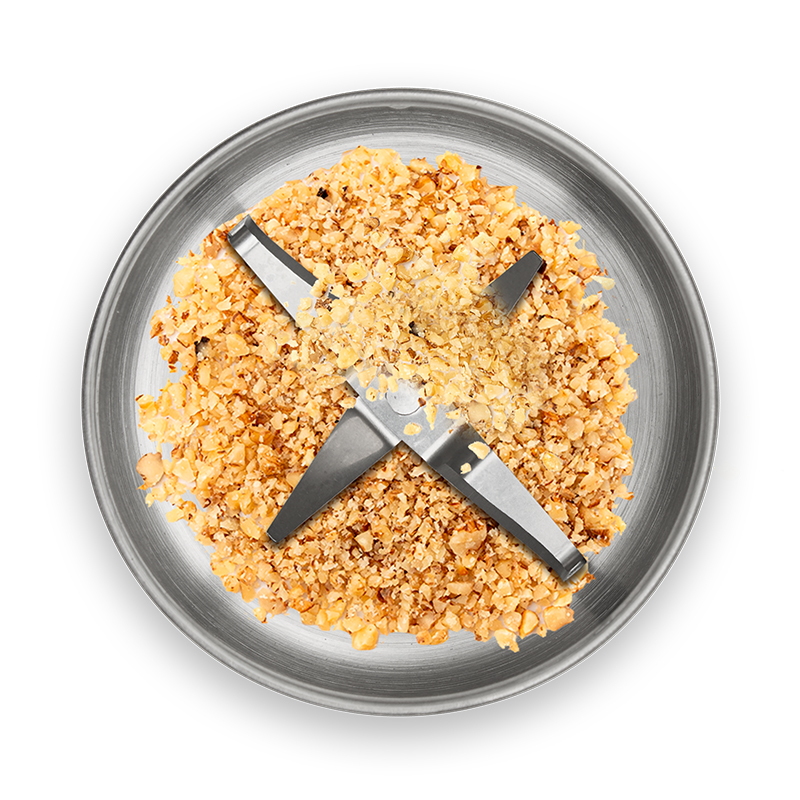 Includes stainless steel grinding container for nuts, cheese, seeds, and spices (4 blades)