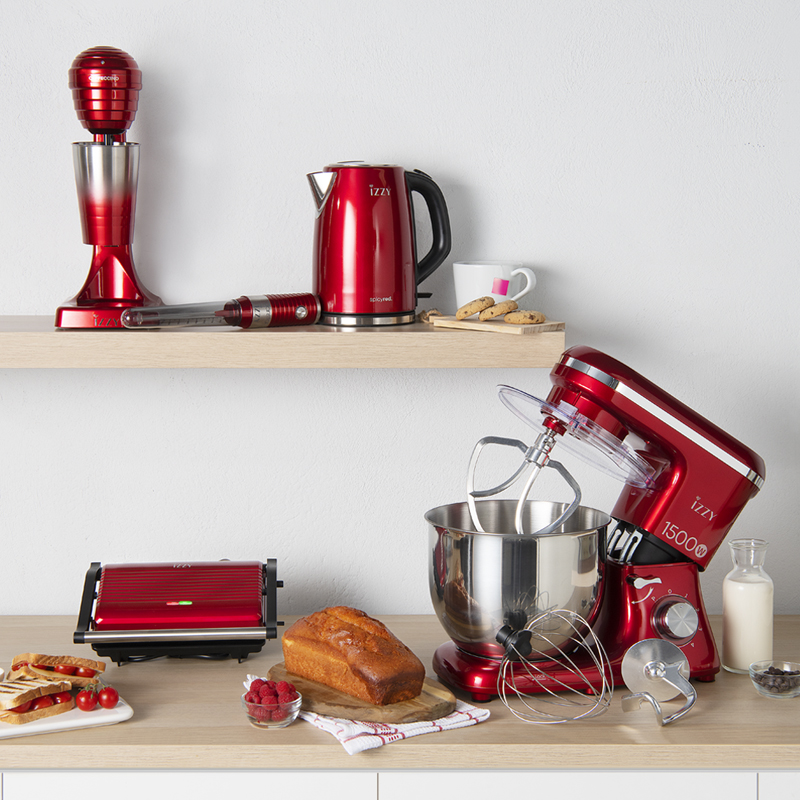Η κουζινομηχανή IZ-1500 της ΙΖΖΥ είναι ο νέος σου βοηθός για κάθε γλυκιά ή αλμυρή δημιουργία σου, προσφέροντας ευελιξία και υψηλή απόδοση. Είναι κόκκινη, κομψή και σούπερ μοντέρνα, ενισχύοντας την αισθητική της κουζίνας σου, ενώ η υψηλή ποιότητα κατασκευής εξασφαλίζει μακροχρόνια αντοχή και αξιοπιστία.